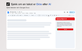 Ekte.ai - ตรวจสอบข้อความสำหรับ AI ใน Google Docs เป็นโปรแกรมฟรี สำหรับ Chrome ซึ่งเป็นส่วนหนึ่งของหมวดหมู่ 'ส่วนเสริม & เครื่องมือ'เกี่ยวกับ Ekte.ai - ตรวจสอบข้อความสำหรับ AI ใน Google Docs สำหรับ Chrome